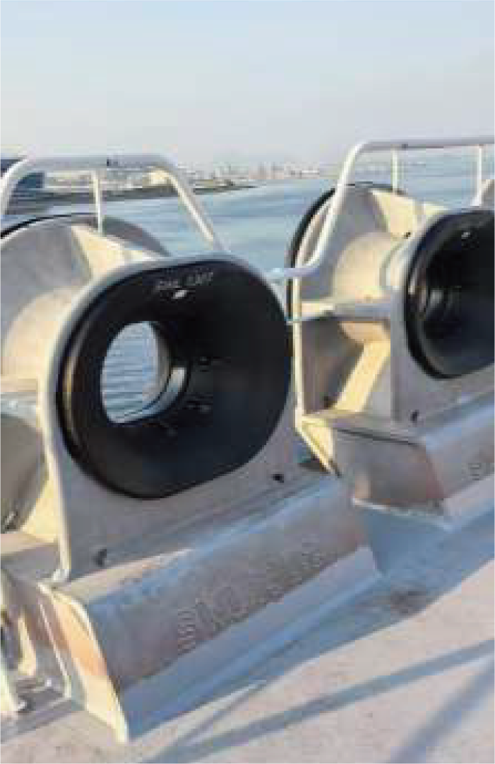 - 簡単取り付け(レトロフィット対応) 特殊な工具や火気工事(ホットワーク)、ドック入りの必要はありません。既存船のチョックにも現場ですぐに装着可能です。